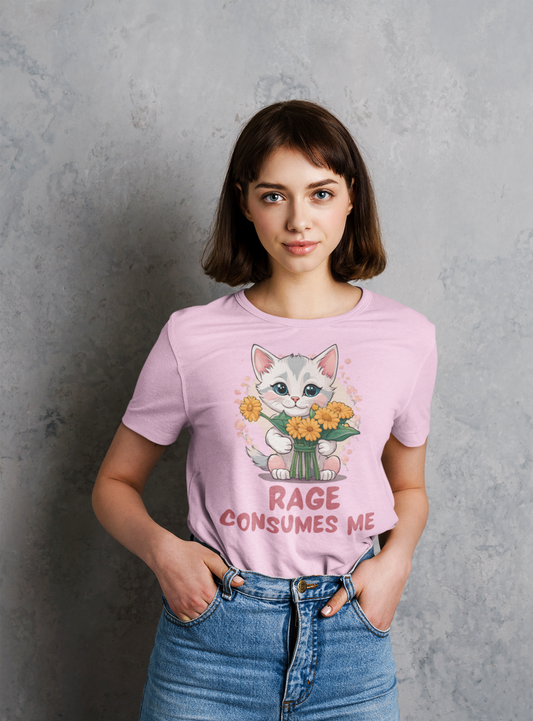 Fiercely Cute Kitten T-Shirt, Cat Lover's Rage Tee, Humorous Feline Graphic Shirt