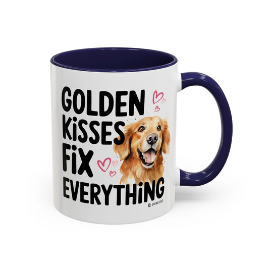 Golden Kisses Fix Everything Mug, Dog Lover Gift, Pet Owner Coffee Cup, Cute Animal Lover Mug, Fun Pet Quote Mug