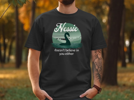 Nessie Believer Unisex Garment-Dyed T-shirt, Funny Loch Ness Tee, Cryptid Enthusiast Gift, Mythical Creature Top, Humorous Cryptid Shirt