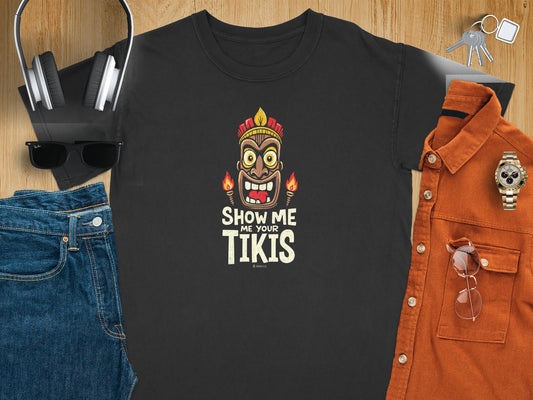 Tiki Print Tee, Hawaiian Style Shirt, Unisex Graphic Tshirt, Funny Aloha Top, Naughty Island Apparel