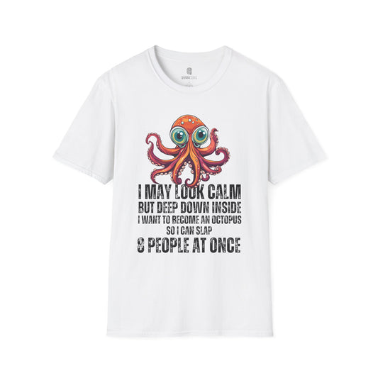 Octopus Funny Unisex Softstyle T-Shirt, Crazy Humor Tee, Stand Out Shirt, Quirky Octopus Top, Hilarious Graphic Tee