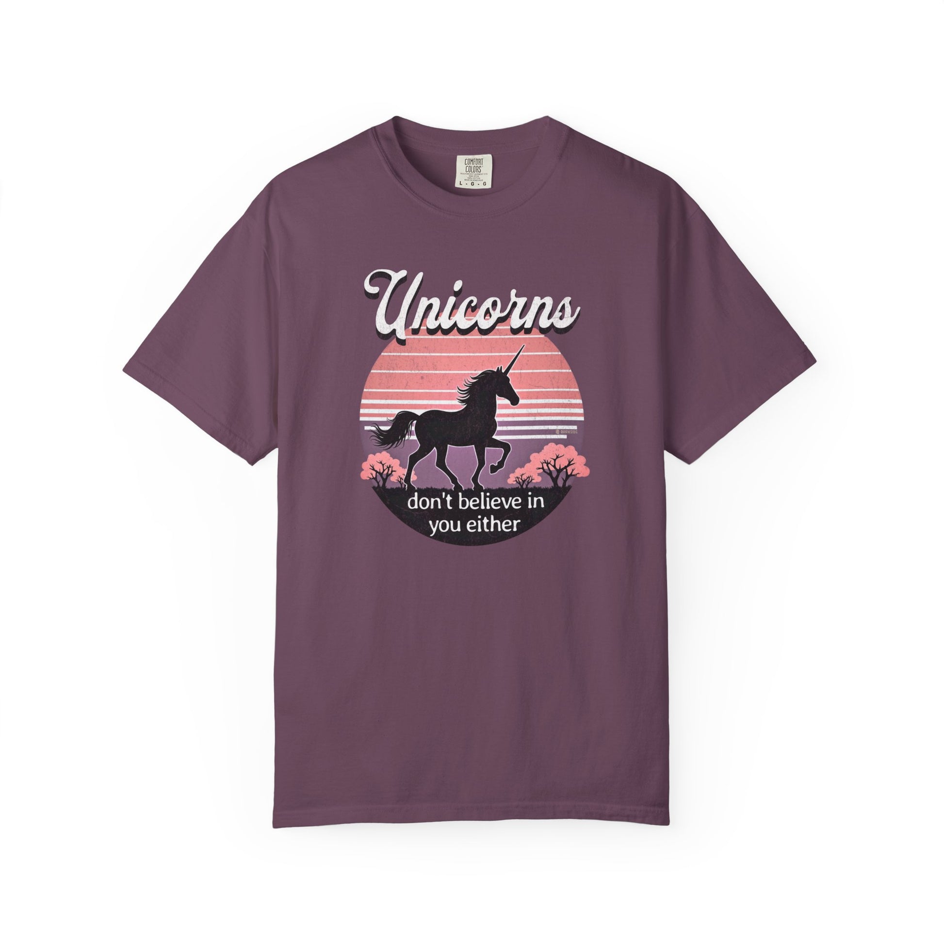 Unicorn Believer Unisex Garment-Dyed T-shirt, Funny Unicorn Tee, Cryptid Enthusiast Gift, Mythical Creature Top, Humorous Cryptid Shirt